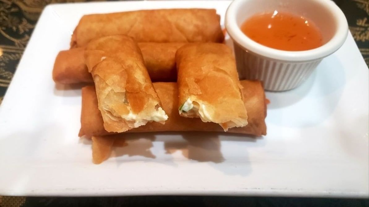 Delicious deep fried rolls stuffed with cream cheese, carrots, and onions, served with a sweet and sour sauce. 4 pieces