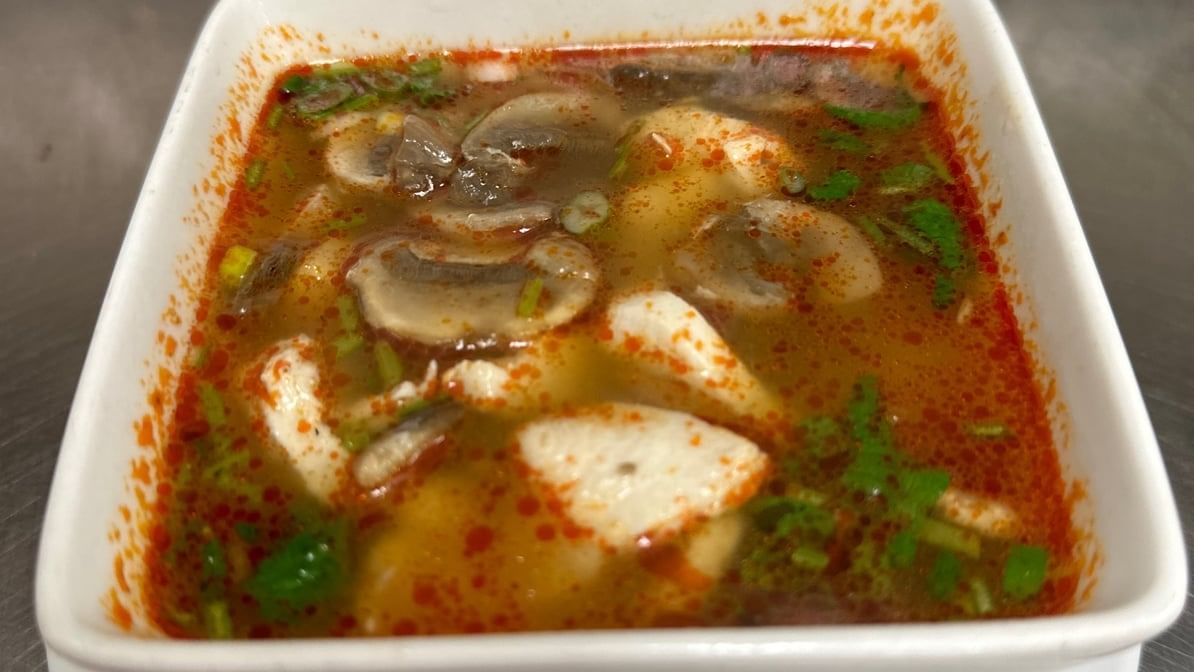 A spicy and sour soup, cooked with flavors of lime leaves, lemongrass, mushrooms, tomatoes, cilantro and scallions. Choose your protein.