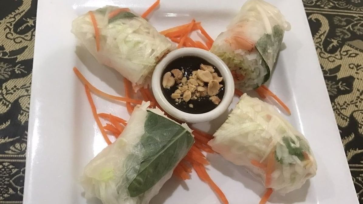 Fresh lettuce, bean sprouts, carrots, basil, cilantro, and rice noodles wrapped in a steamed rice paper; served with a hoisin sauce. 2 pieces. Choose protein between veggie or shrimp (add shrimp for an additional charge)