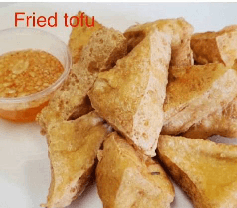 Lightly fried tofu served with Thai sweet and sour sauce topped with peanuts