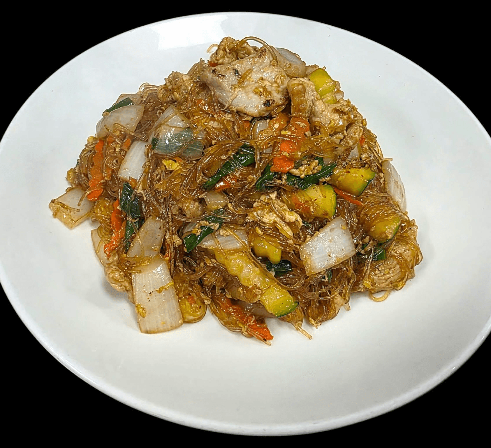 Vermicelli noodles sautéed with egg, zucchini, carrots, scallions and onions. Choose your protein and spice level.