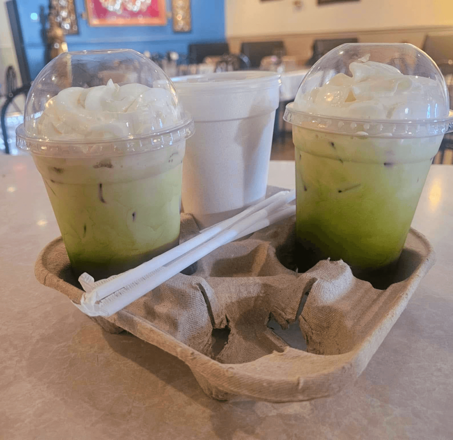 Thai tea options include sweetened, unsweetened, hot green per cup, and traditional Thai tea