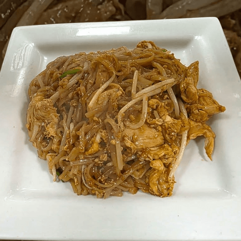 A simple serving of noodles, typically includes a selection from rice noodles, glass noodles, or flat noodles based on traditional Thai preparation methods