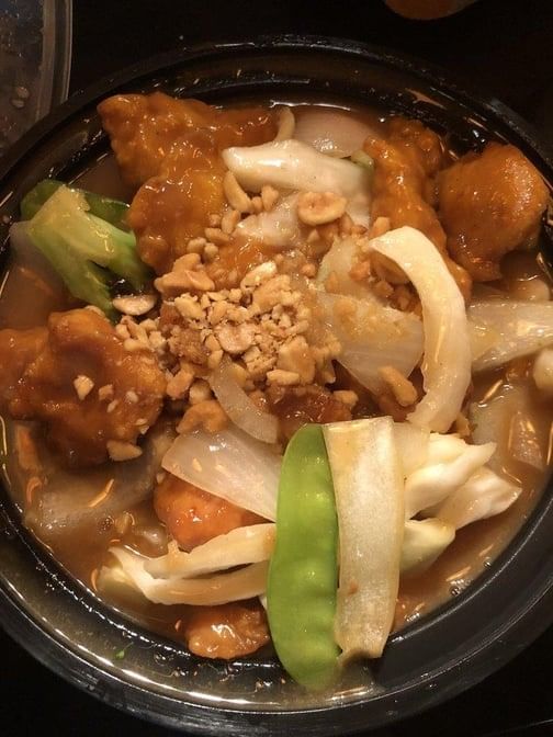 Pineapple, zucchini, carrots, bell peppers and onions in a sweet and sour sauce. Choose your protein and spice level.
